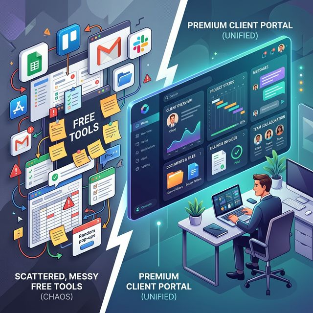 The Financial Cost: Let's assume you waste just 4 hours a week on administrative busywork coordinating across your "free" tools. That is 16 hours a month. If your billable rate is $125/hr, you are paying $2,000 a month in opportunity cost just to avoid paying a small monthly subscription for a centralized portal.